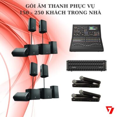 Đối với gói âm thanh dành cho sự kiện trong nhà thường được thiết kế để đáp ứng nhu cầu đa dạng của các sự kiện trong không gian khép kín. Với nhiều option linh hoạt, gói âm thanh này cho phép bạn lựa chọn các thiết bị phù hợp như loa, micro, mixer và hệ thống âm thanh cao cấp tùy theo quy mô và yêu cầu của sự kiện. Phù hợp cho các buổi hội thảo, hội nghị, tiệc cưới, triển lãm, hoặc các sự kiện nhỏ đến trung bình, gói âm thanh này đảm bảo mang đến chất lượng âm thanh rõ ràng và mạnh mẽ, nâng tầm trải nghiệm cho khách mời.