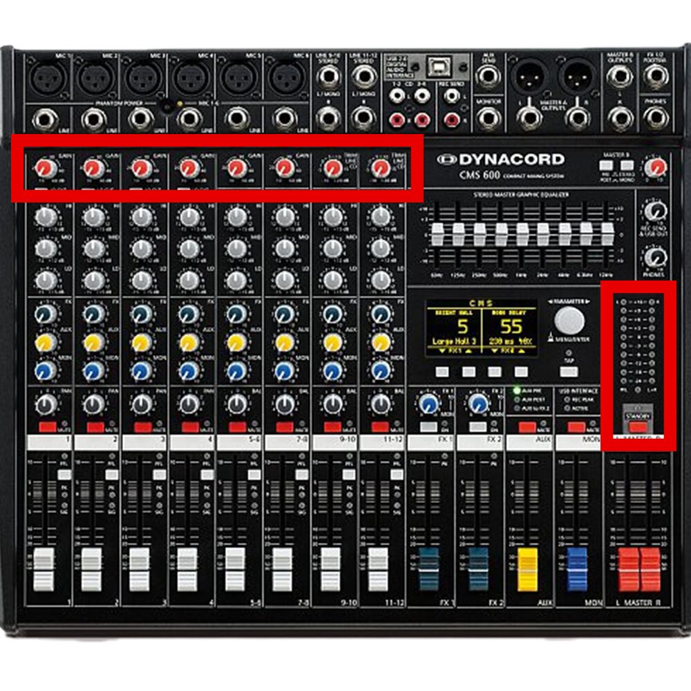 Lấy Gain (độ nhạy đầu vào) đúng giúp Mixer hoạt động ở dải tần tốt nhất, không bị nhiễu nền (S/N Ratio).